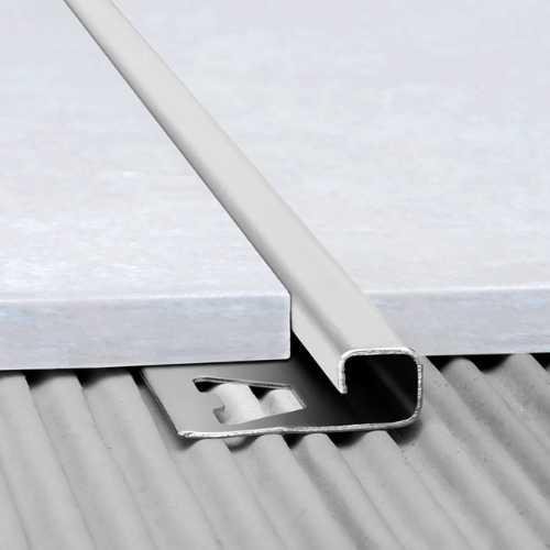 Perfil de acero inoxidable. Puede utilizarse como divisor de pisos en el mismo nivel, para unir diferentes revestimientos a 90 grados, delimitar ambientes o como terminación de escalón protegiendo el canto.