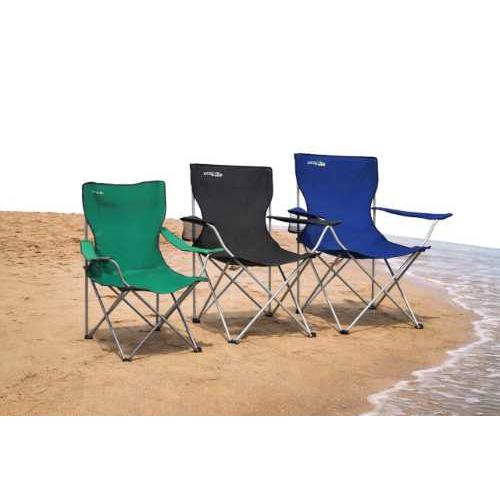Cómodo y resistente sillón plegable ideal para actividades al aire libre como camping, playa, pesca o días de campo. Cuenta con apoyabrazos, posavasos integrado y diseño ergonómico para mayor confort. Su estructura metálica de gran resistencia, con caños livianos revestidos en pintura epoxi, soporta hasta 100 kg. Incluye bolso de transporte para facilitar su traslado.