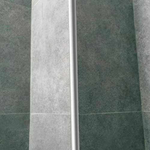 Perfil de aluminio de 10 mm con diseño curvo resuelve el encuentro de paredes, puertas y ventanas. Acompaña griferías y diseños curvos.