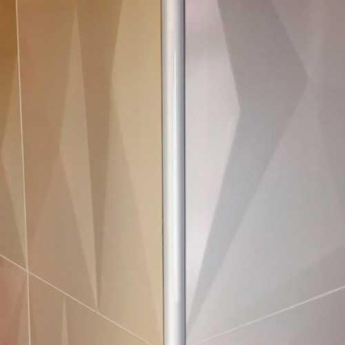 Perfil de aluminio de 10 mm con diseño curvo resuelve el encuentro de paredes, puertas y ventanas. Acompaña griferías y diseños curvos.
