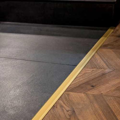Perfil de aluminio para ocultar imperfecciones en la unión de pisos de diferentes revestimientos al mismo nivel.