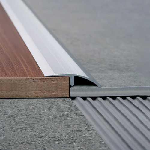 Perfil de aluminio curvo transicional para pisos de diferentes alturas. Cubre imperfecciones debido a los cortes o astillado de los materiales.